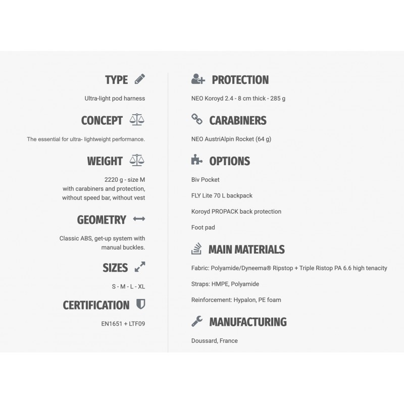 Pensée pour l’ultra-light et la performance, cette sellette va à l’essentiel. Épaisseur très fine, fairing aérodynamique et veste aéro pour un profil propre en vol, avec un container secours intégré. Légère et compacte, elle se fait oublier pour laisser toute la place au pilotage.